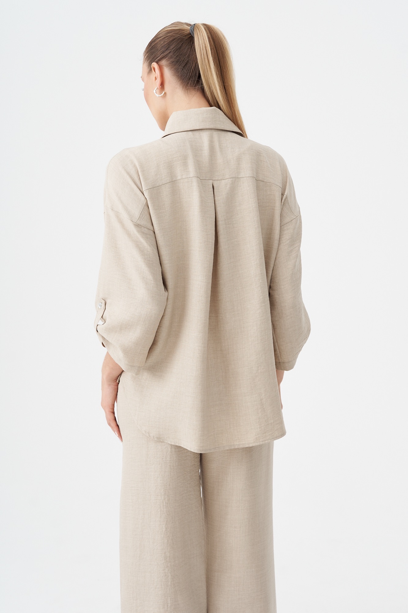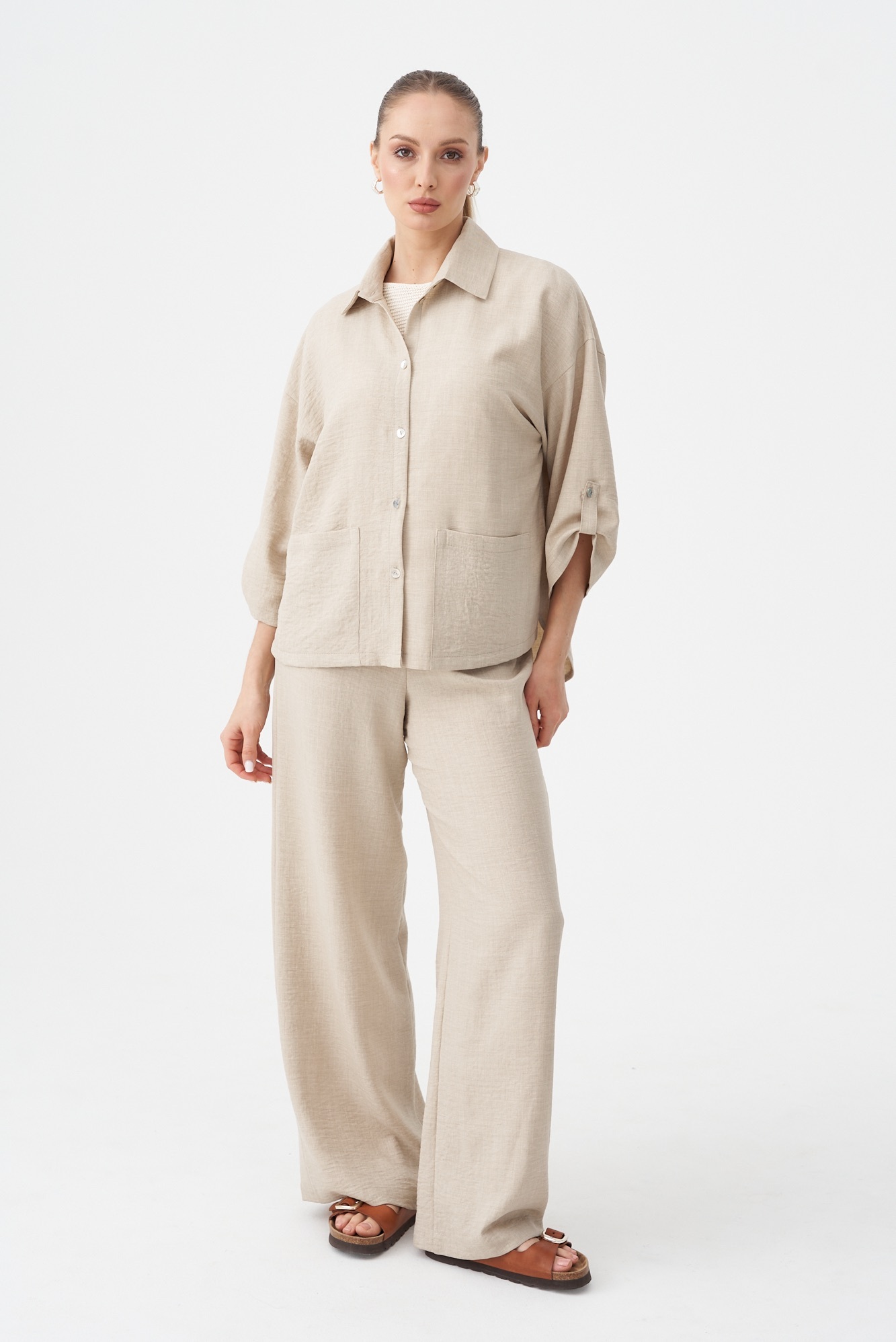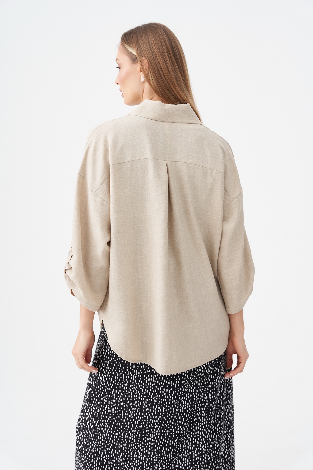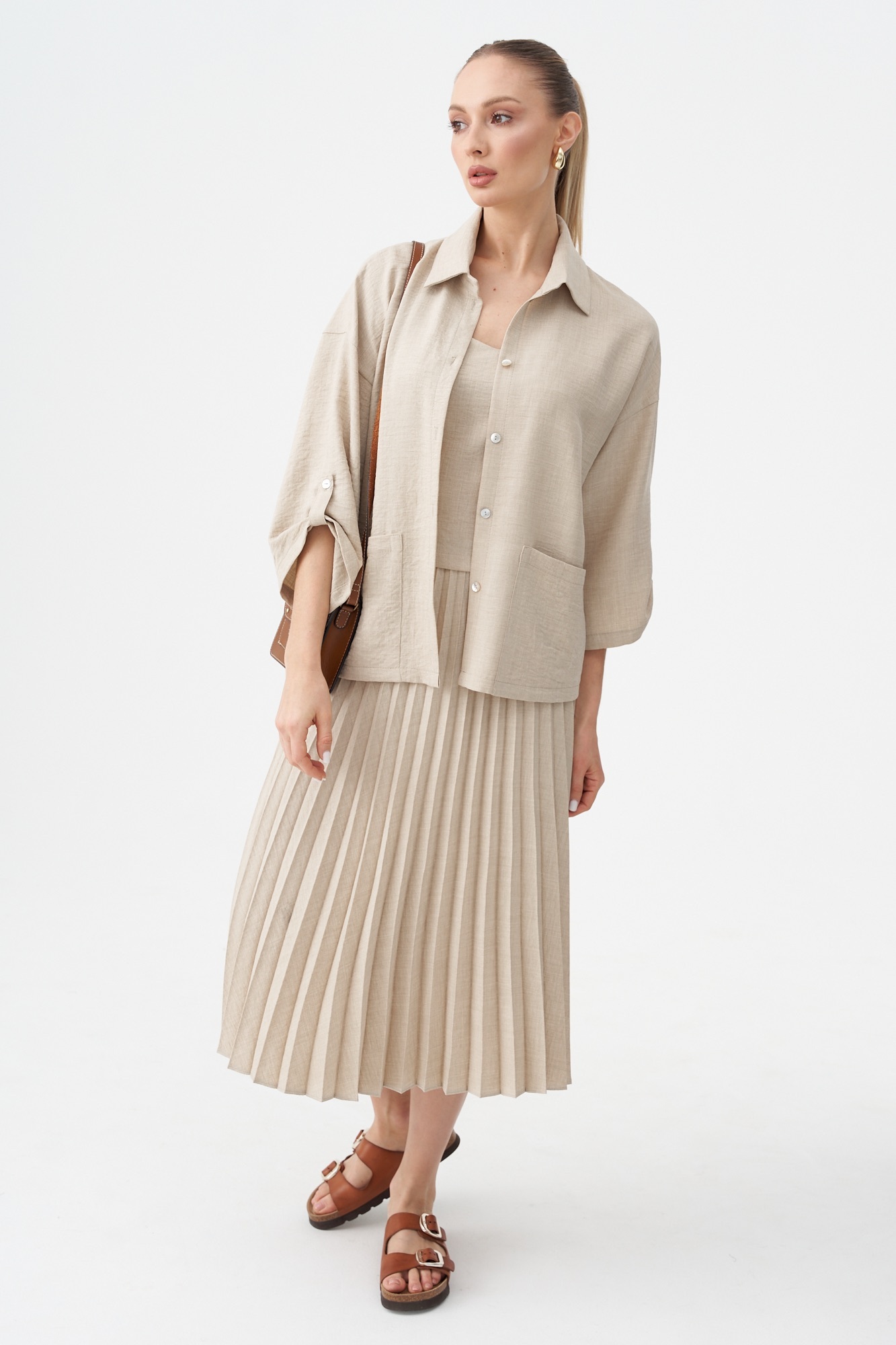Рубашка-жакет свободного силуэта из легкой , слегка сжатой ткани, может стать базовой для вашего гардероба. Модель с рукавом 3/4, округлым низом и карманами. Спинка удлиненная. Хорошо смотрится , как верхний слой.