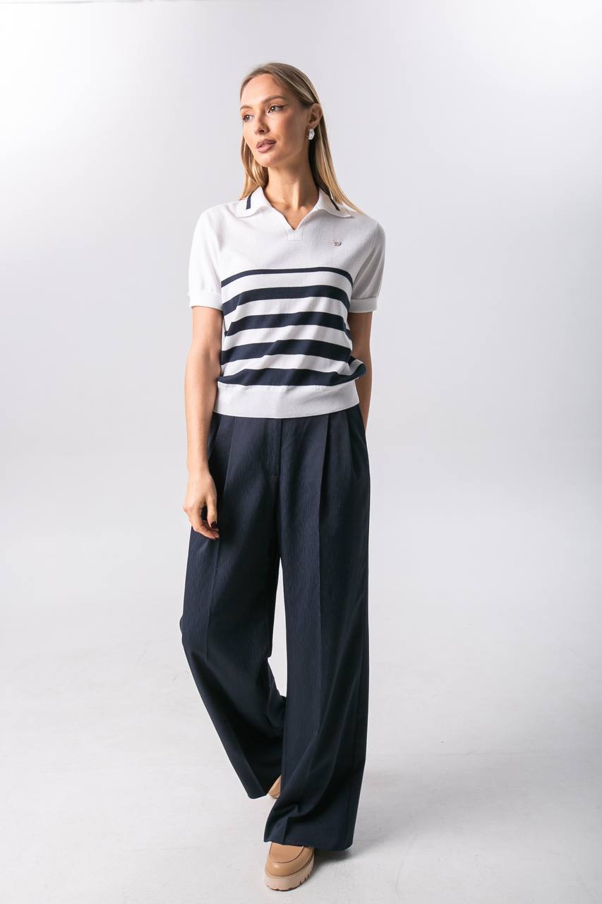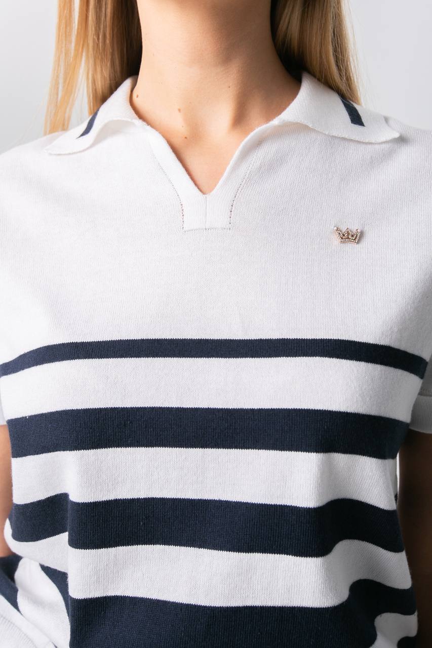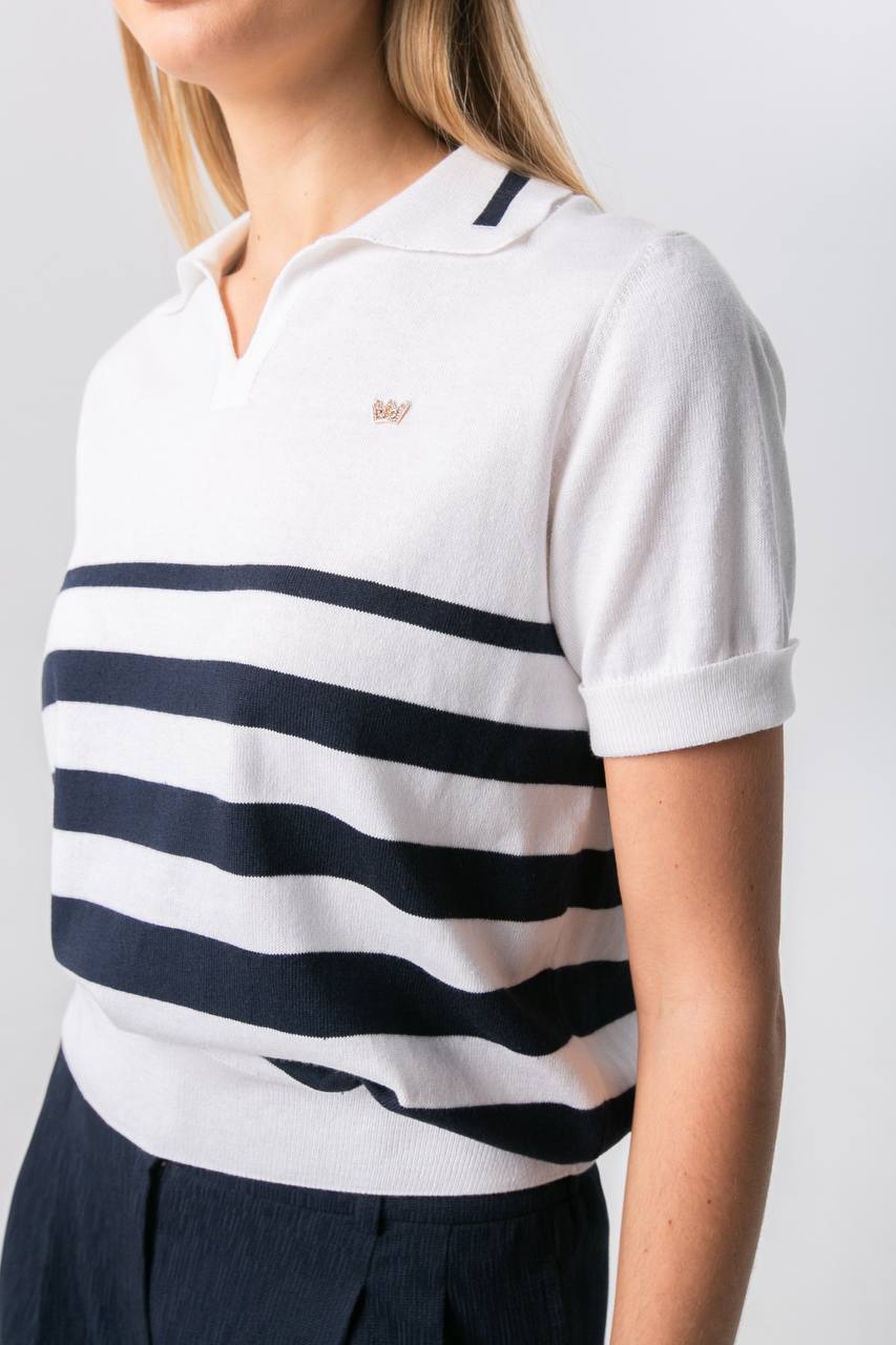 Стильный белый джемпер-поло может стать базовым в весенне-летнем гардеробе . Модель фактурной вязки со свободным прилеганием. Рубашечный воротник и вырез хорошо корректирует линию шеи. Отличный состав позволит чувствовать себя комфортно даже в жаркую погоду.