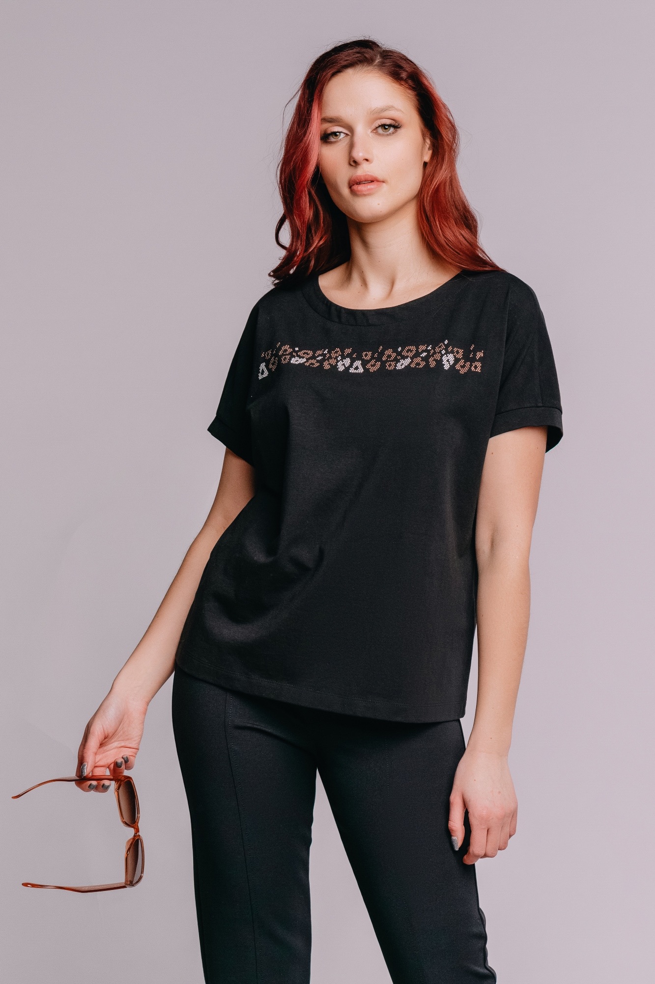 Футболка с цельнокроеным рукавом с отворотом отлично дополнит повседневный стиль. Модель выполнена из высококачественного трикотажа, который не вытягивается во время носки и не пиллингуется после многократных стирок. По переду аккуратный декор.