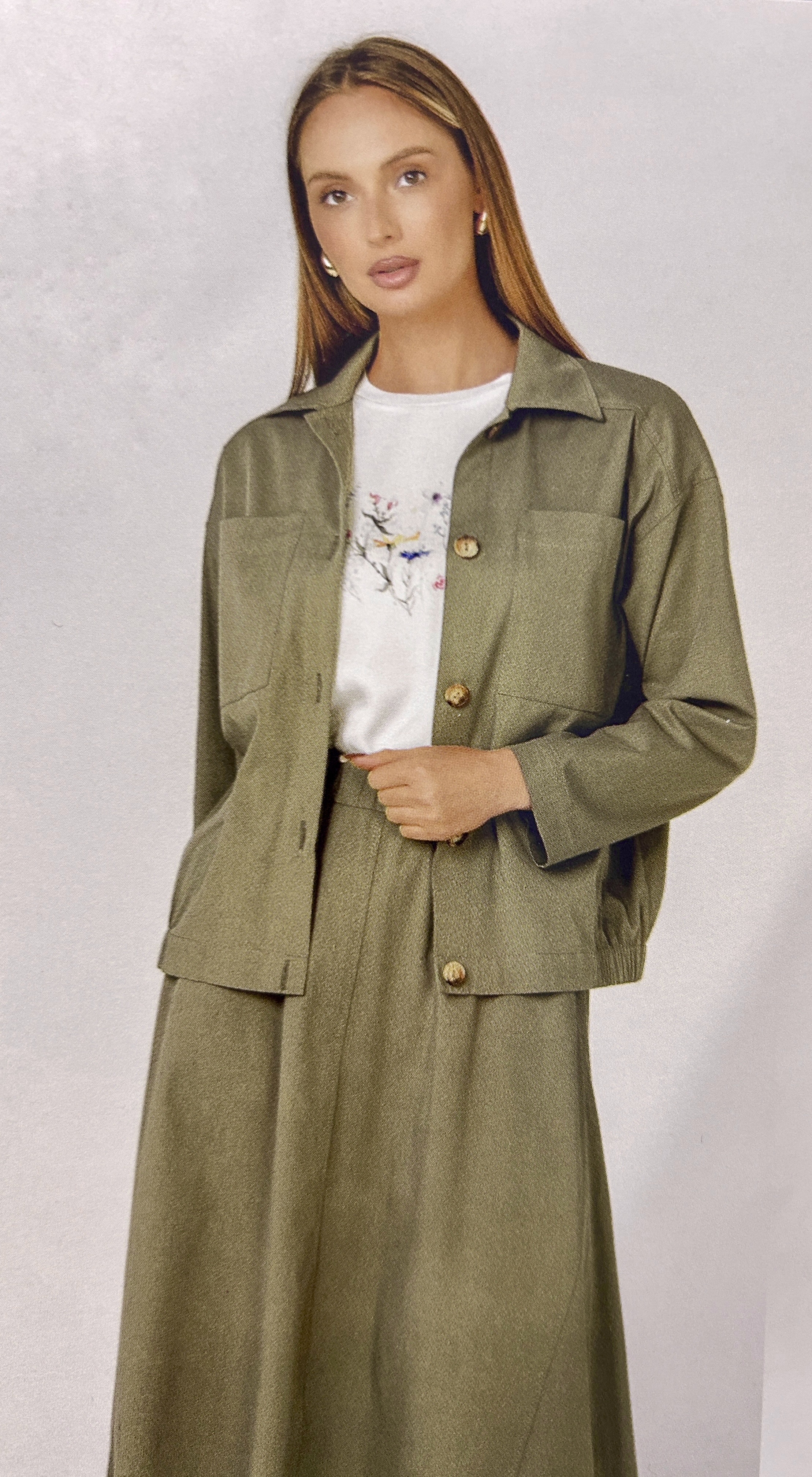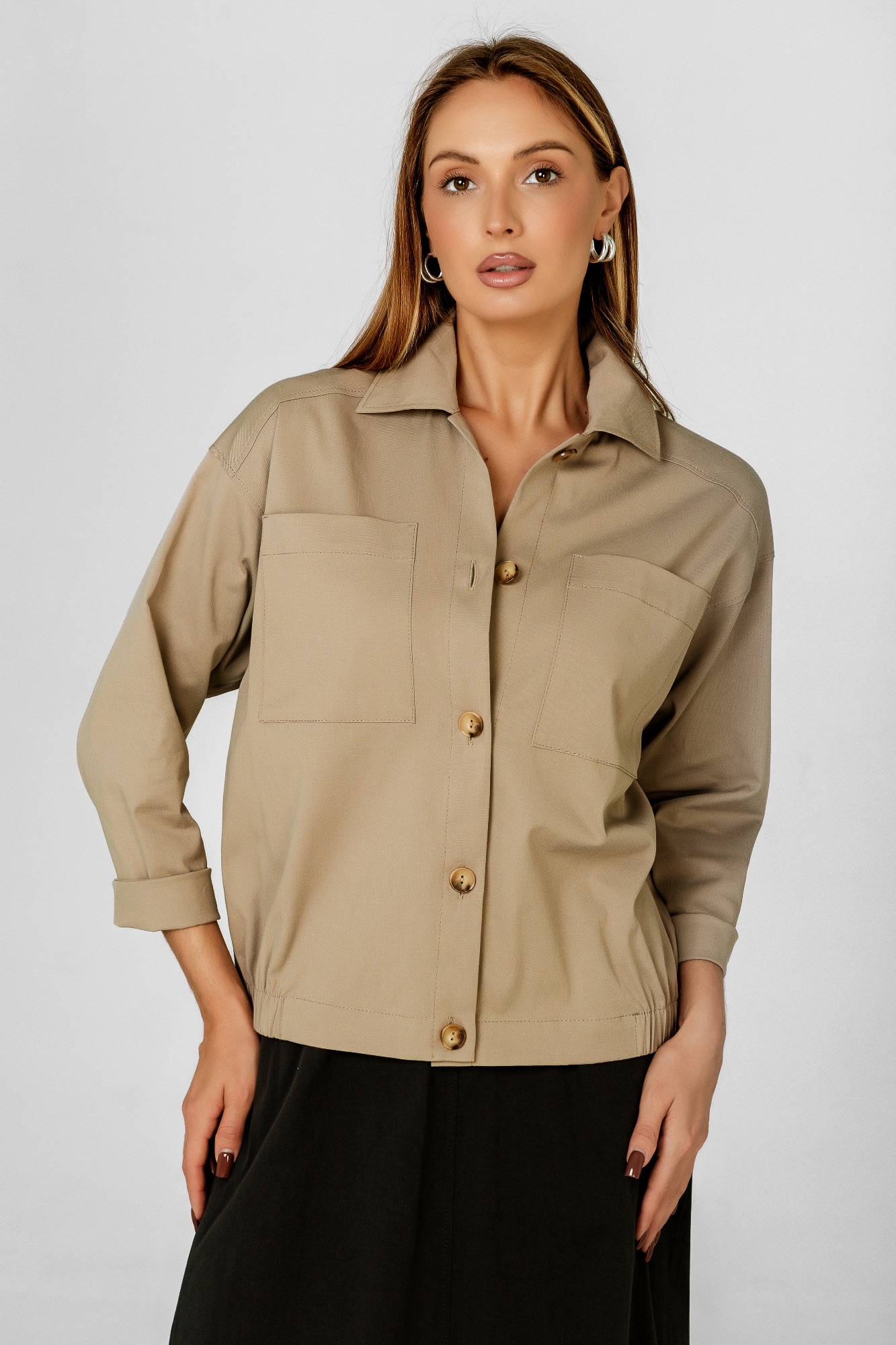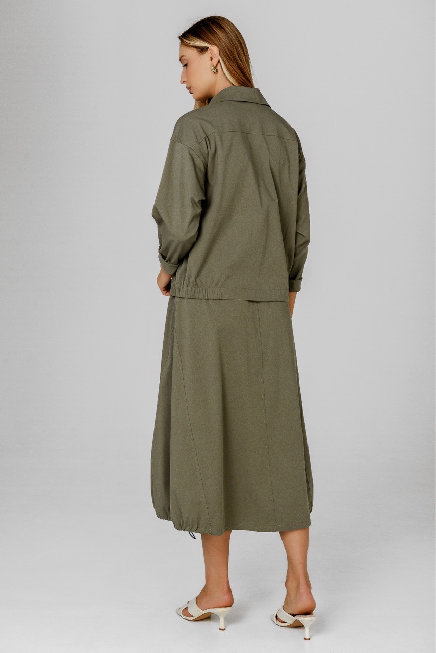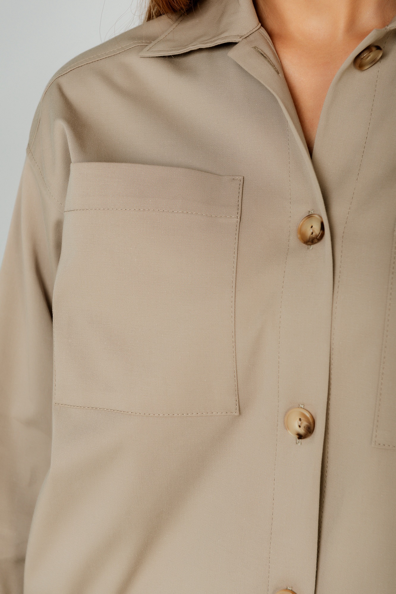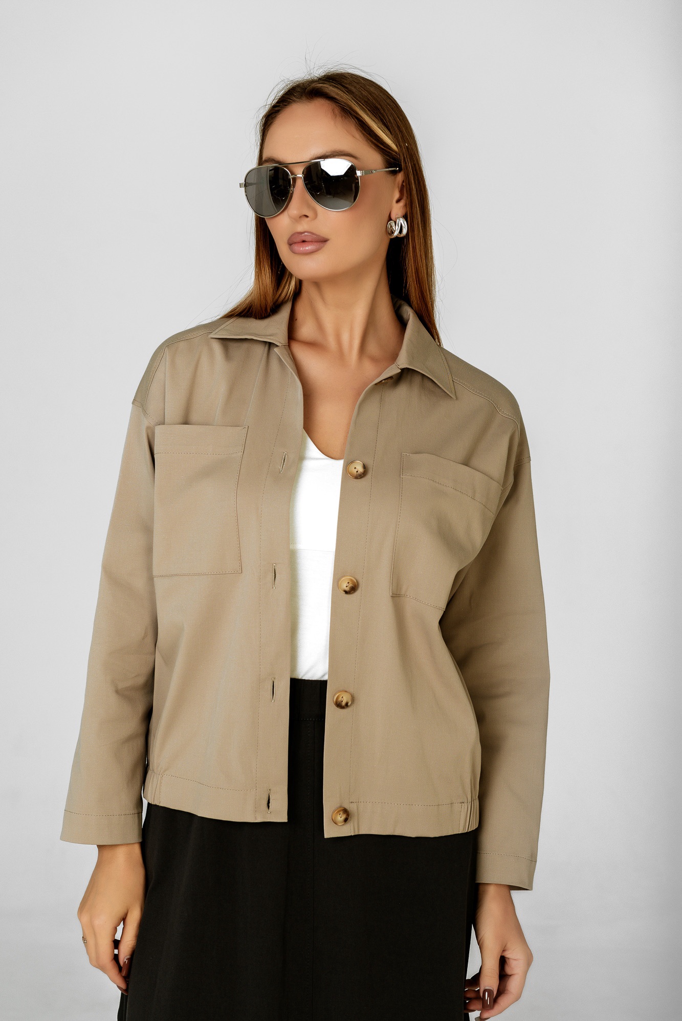 Хлопковый жакет , пошитый по типу бомбера , станет отличной альтернативой классическому жакету или ветровке. Модель свободного силуэта с длинным рукавом и застежкой на кнопки. Жакет имеет спокойный красивый цвет , который отлично сочетается с другими летними и базовыми цветами.