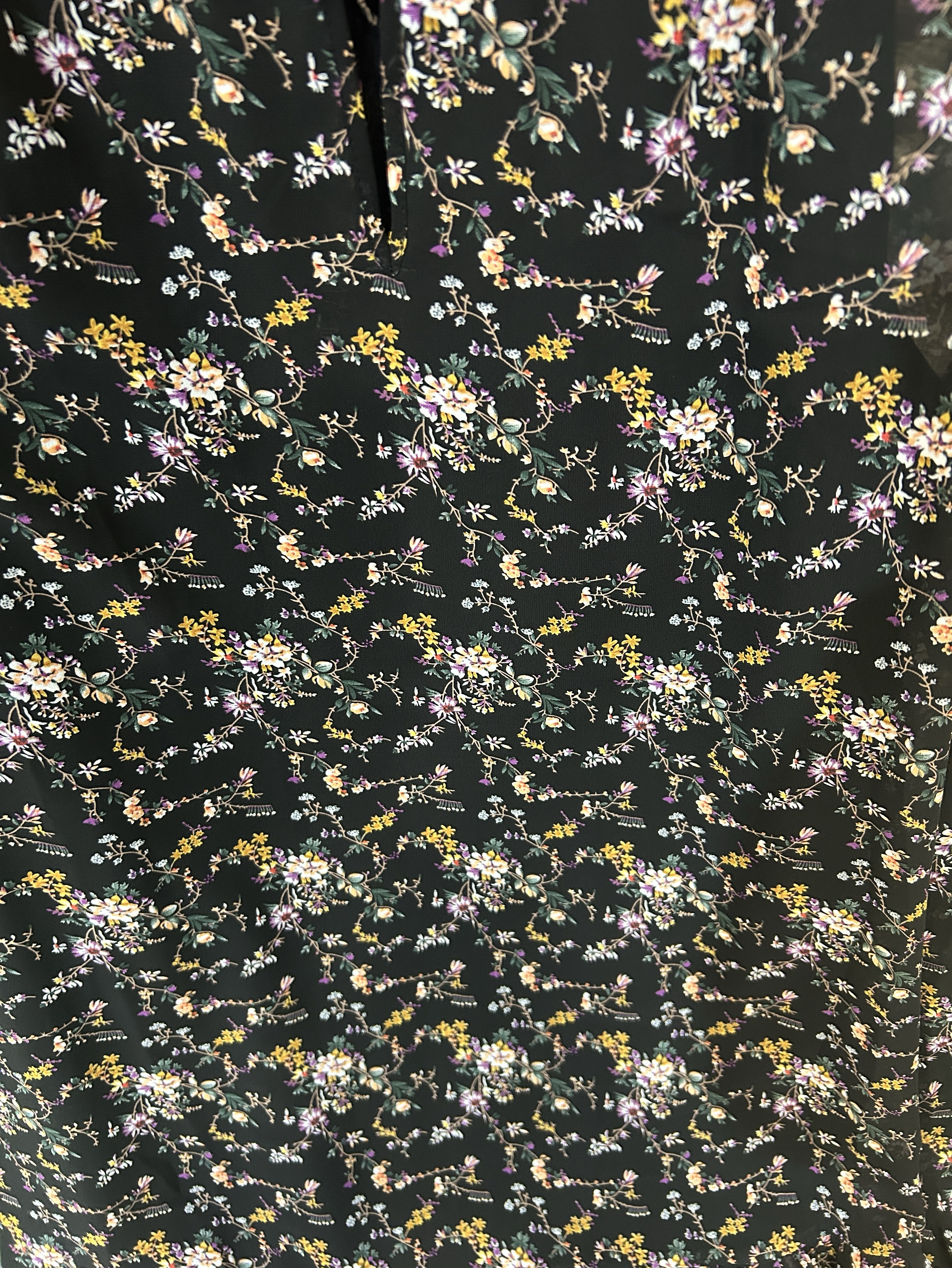 Шифоновое платье длины миди отлично подойдёт для носки в любой сезон. Спокойная благородная расцветка добавит образу женственности. Модель имеет пышный рукав 3/4 и свободный крой. Хорошо скрадывает все недостатки фигуры, если таковые имеются. В наличии черный цвет